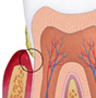 3.) Fogágybetegségek (parodontitis): ha az ínygyulladás hosszú ideig fennmarad, akkor krónikus ínygyulladásról beszélünk. A folyamatos harc a baktériumok és a szervezet védekező rendszere között oda vezet, hogy a normálisan is jelenlevő barázda a fog és az íny között egyre mélyebb lesz. Ez az ínytasak. A folyamatosan fennálló gyulladás következtében a fogat tartó csontszerkezet is lassan leépül. Ezt a betegséget már kezdeti fogágybetegségnek nevezzük. |