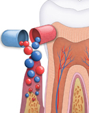 Helyi gyógyszeres kezelés: A kezelés során gyulladáscsökkentő, fertőtlenítő, fogkőképződést gátló, fogszuvasodást megelőző és az íny védekezését elősegítő hatóanyagokat juttatunk mélyen az ínytasakokba. A fogakra pontosan illeszkedő mélyhúzott fólia segítségével érjük el, hogy a hatóanyagokat tartalmazó gél a megfelelő ideig a fogakon és az ínyen maradjon. A szájvizek és fogkrémek útján bevitt hatóanyagok hátránya, hogy nagyon rövid ideig vannak kapcsolatban az ínnyel. Ezzel szemben a mélyhúzott sín kényelmes, így lehetőség van arra, hogy a hatóanyag hosszabb ideig is kapcsolatba maradjon az érintett területtel.